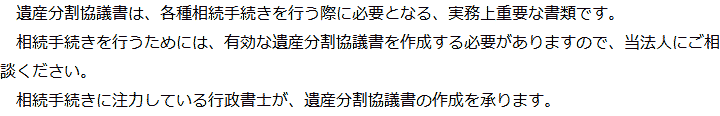 トップ業務内容遺産分割協議書の作成 階層構造▼ 業務内容(目次) 遺産分割協議書の作成 業務内容(目次)業務内容トップ行政書士法人心の業務内容遺言遺産整理相続人調査相続財産調査遺産分割協議書の作成預金・貯金の解約・名義変更証券口座の解約・名義変更自動車の名義変更心グループのその他の業務内容家族信託・民事信託節税対策事業承継遺言の検認相続放棄限定承認遺産分割遺留分侵害額請求相続登記相続税申告相続税調査 受付時間 平日 9時~21時、土日祝 9時~18時 夜間・土日祝の相談も対応します (要予約) 所在地 〒477-0031 愛知県東海市大田町下浜田1016番地ユウナル東海105 0120-2403-39 お問合せ・アクセス・地図